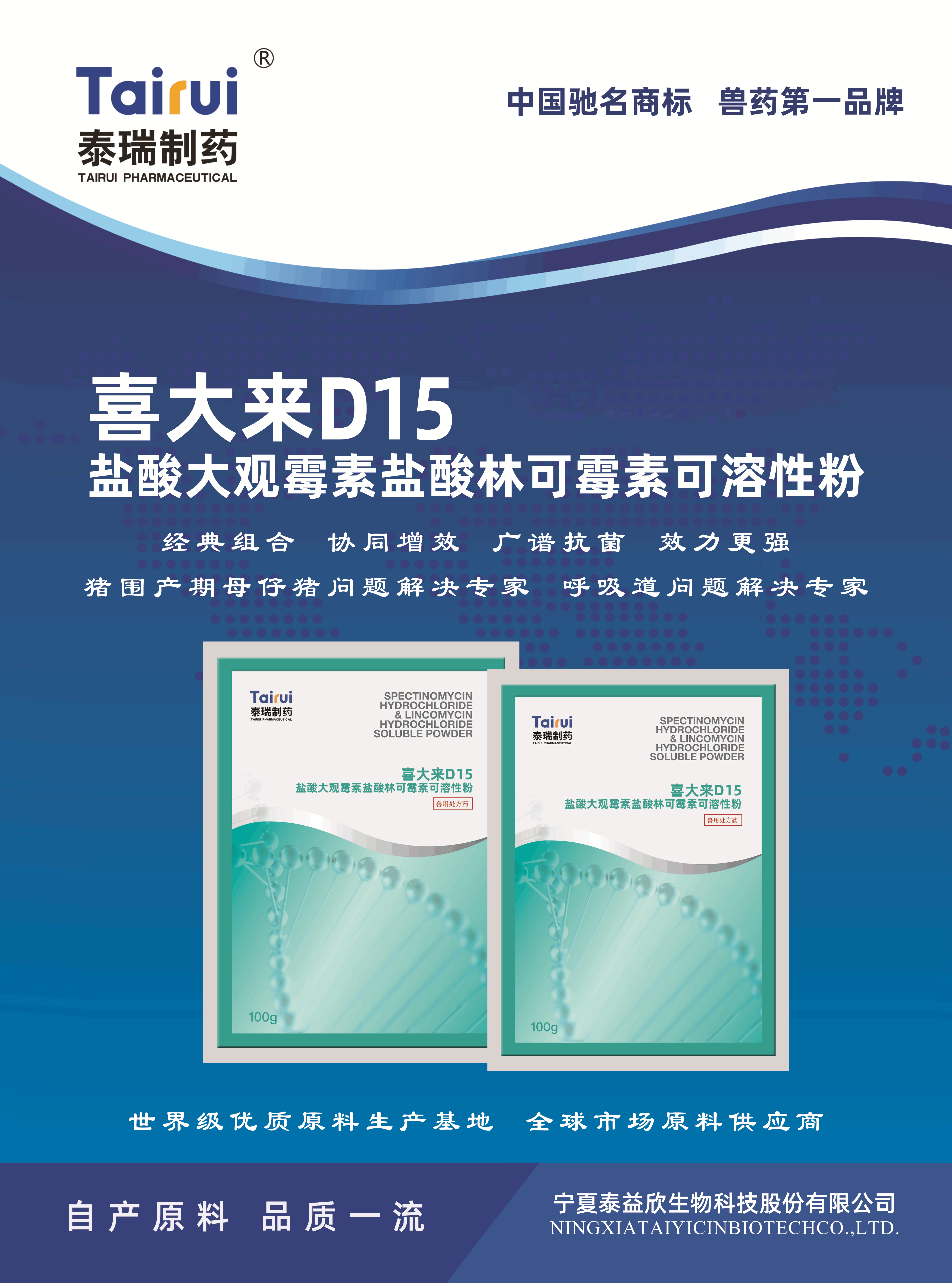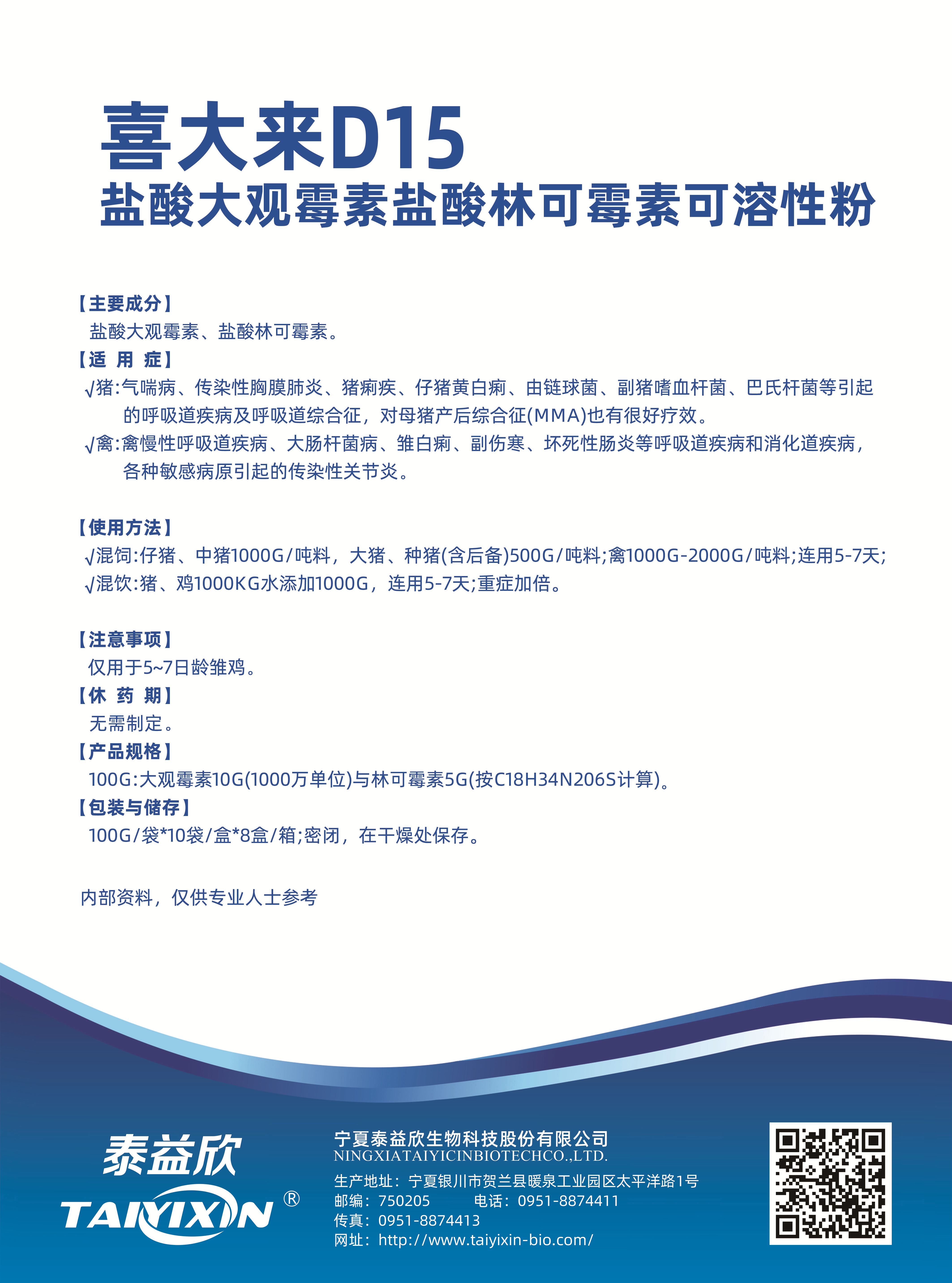 鹽酸林可霉素,用于治療革蘭氏陽(yáng)性菌和支原體感染。在畜禽飼料中長(zhǎng)期按低劑量添加,可改善飼料報(bào)酬、促進(jìn)動(dòng)物生長(zhǎng)、提高增重,從而縮短飼養(yǎng)周期。在畜禽飼料中按高劑量添加,可預(yù)防和治療豬痢疾、結(jié)腸炎、回腸炎、壞死性腸炎,在發(fā)生萎縮性鼻炎時(shí)維持體重,降低新生仔豬和斷奶仔豬因大腸桿菌引起的下痢和水腫病的發(fā)病率,控制因支原體感染引起的豬喘氣病、雞慢性呼吸道病及減輕畜禽應(yīng)激反應(yīng),并可預(yù)防和治療畜禽在暴發(fā)病毒性疾病后敏感菌的繼發(fā)感染。